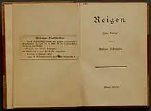 La pièce La Ronde. Dix dialogues fut d'abord intitulée Liebesreigen (La Ronde d'amour). Sur la suggestion d'Alfred Kerr, un de ses amis, Schnitzler accepta de modifier le titre en Reigen, pour minimiser le scandale et les risques de censure prévisibles[2],[3].