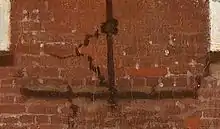 La toile représente, selon une perspective frontale, une façade en briques coupée à droite et en haut du cadre, qui occupe plus de la moitié de la composition. Cette maison est reliée par un mur à une seconde façade, plus largement coupée encore par la gauche du cadre. Derrière ce mur s'élèvent plusieurs autres pignons triangulaires.