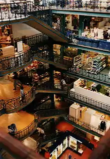 À partir de 1885, Ernest Cognacq fait appel à l'architecte Frantz Jourdain pour l'aménagement, l'agrandissement et la transformation des nouveaux magasins : si les façades sont conservées, certains immeubles sont reconstruits, d'autres sont rehaussés et les cours sont couvertes de verrières[44].