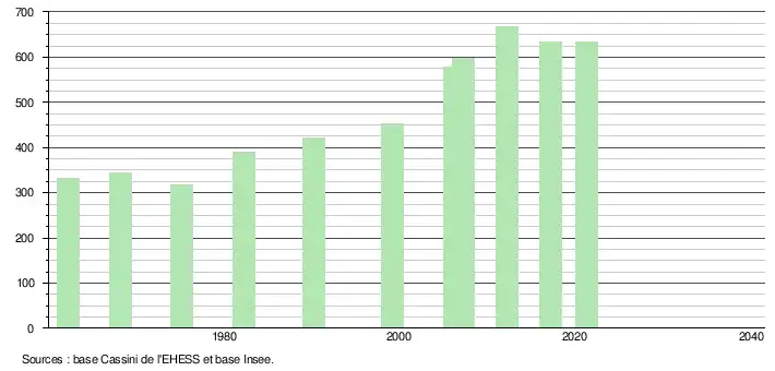 L'évolution du nombre d'habitants est connue à travers les recensements de la population effectués dans la commune depuis 1962. Pour les communes de moins de 10 000 habitants, une enquête de recensement portant sur toute la population est réalisée tous les cinq ans, les populations légales des années intermédiaires étant quant à elles estimées par interpolation ou extrapolation[21]. Pour la commune, le premier recensement exhaustif entrant dans le cadre du nouveau dispositif a été réalisé en 2007[22].