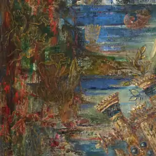 Touchant l'esthétique de l'inachèvement que l'on retrouve sur cette peinture de 1895, elle est typique des dernières années du peintre[8]. Cette technique inédite qui ne trouve son origine dans aucune tradition académique laissait libre cours au premier jet qui se voyait par la suite surimposer un réticule graphique[8]. Ce procédé déjà présent sur la Salomé tatouée se retrouve ici à travers les figurations de flore marine comme on peut le voir dans l'illustration ci-contre où on remarque que le dessin de cette flore vient se surimposer à des couleurs librement appliquées[8].