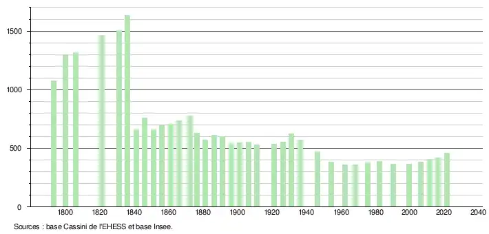 - Fiches Insee - Populations légales de la commune pour les années 2006, 2007, 2008, 2009, 2010, 2011, 2012, 2013, 2014, 2015, 2016, 2017, 2018, 2019, 2020 et 2021.