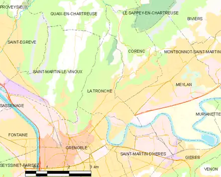 La Tronche est une commune urbaine, car elle fait partie des communes denses ou de densité intermédiaire, au sens de la grille communale de densité de l'Insee[Note 1],[16],[17],[18]. Elle appartient à l'unité urbaine de Grenoble, une agglomération intra-départementale regroupant 38 communes[19] et 456 057 habitants en 2021, dont elle est une commune de la banlieue[20],[21].
