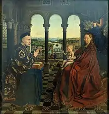 Ce tableau est un héritage direct du peintre flamand Jan van Eyck et du tableau La Vierge du chancelier Rolin[1].