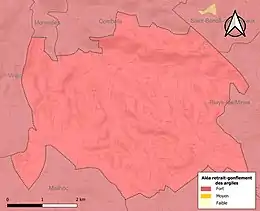 Le retrait-gonflement des sols argileux est susceptible d'engendrer des dommages importants aux bâtiments en cas d’alternance de périodes de sécheresse et de pluie. La totalité de la commune est en aléa moyen ou fort (76,3 % au niveau départemental et 48,5 % au niveau national). Sur les 252 bâtiments dénombrés sur la commune en 2019, 252 sont en aléa moyen ou fort, soit 100 %, à comparer aux 90 % au niveau départemental et 54 % au niveau national. Une cartographie de l'exposition du territoire national au retrait gonflement des sols argileux est disponible sur le site du BRGM[21],[Carte 3].