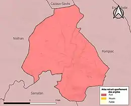 Le retrait-gonflement des sols argileux est susceptible d'engendrer des dommages importants aux bâtiments en cas d’alternance de périodes de sécheresse et de pluie. La totalité de la commune est en aléa moyen ou fort (94,5 % au niveau départemental et 48,5 % au niveau national). Sur les 84 bâtiments dénombrés sur la commune en 2019, 84 sont en aléa moyen ou fort, soit 100 %, à comparer aux 93 % au niveau départemental et 54 % au niveau national. Une cartographie de l'exposition du territoire national au retrait gonflement des sols argileux est disponible sur le site du BRGM[24],[Carte 3].