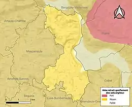 Par ailleurs la commune fait partie de l'aire d'attraction de Saint-Palais, dont elle est une commune de la couronne[Note 7]. Cette aire, qui regroupe 25 communes, est catégorisée dans les aires de moins de 50 000 habitants[29],[30].