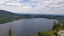 Vue du lac Lyster regardant vers l'ouest vers les monts Sutton