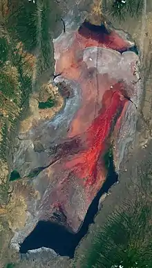 Le lac Natron est un lac de soude, salé, endoréique d'origine tectonique dont la superficie variable le cantonne dans le nord de la Tanzanie ou lui fait traverser épisodiquement la frontière avec le Kenya. Ses eaux chargées de micro-organismes attirent une importante communauté de flamants nains qui se régalent d'algues bleues et qui s'y reproduisent et y nidifient.