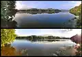 Par un barrage en terre long de 310 m et haut de 16 m[2], il est constitué de trois plans d'eau séparés par deux digues supportant des routes.