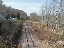 Autrefois une ligne de chemin de fer reliant Langres à Andilly (Haute-Marne) longeait la rive sud. Elle est aujourd'hui désaffectée.