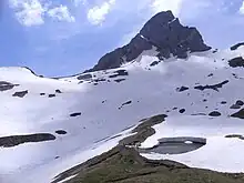 La pointe Blanche vue depuis la pointe du Midi avec à leurs pieds le lac de Peyre.