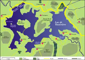 Le lac de Vassivière (Vaciviéra en occitan) est un lac artificiel français de 9,76 km2 qui fut créé par la construction d'un barrage hydroélectrique situé sur la Maulde à la sortie de son vallon encadré par ses deux collines, à l'endroit idéal pour construire un barrage. Plan d'eau le plus important du Limousin et un des plus grands lacs artificiels de France[1], il se situe au nord-ouest du plateau de Millevaches, au sein d'une forêt épaisse, réparti sur les départements de la Creuse et de la Haute-Vienne[2].