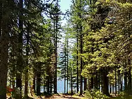 Des forêts de cèdres à mousse verte sont développées sur les pentes nord. On y trouve souvent des forêts clairsemées de mélèzes, qui se transforment en prairies subalpines à hautes herbes. Cette région est particulièrement attrayante au printemps et en été, lorsque de nombreuses fleurs colorées fleurissent dans les prés. Parmi elles, les plus caractéristiques sont des espèces locales de Trollius (Trollius altaicus et Trollius asiaticus), les ancolies (Aquilegia glandulosa), la gentiane (Gentiana grandiflora), le cirse à feuilles variables, le Vératre de Lobel (Veratrum lobelianum), les violettes (Viola altaica), etc.[11].