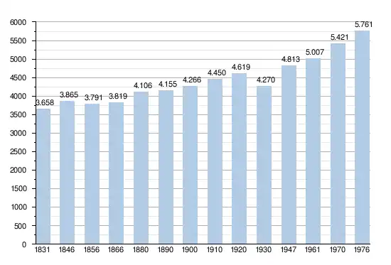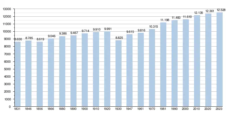 - Source : DGS - Remarque: 1831 jusqu'à 1981=recensement; depuis 1990=nombre d'habitants chaque 1er janvier[6]