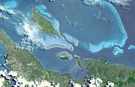 Les récifs se trouvent en moyenne à 30 kilomètres de la côte, avec un maximum de 200 kilomètres aux récifs d'Entrecasteaux.