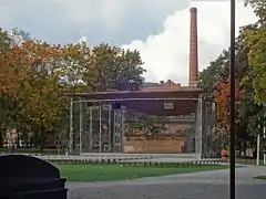 La scène est couverte et mesure environ 8 × 5 mètres et comporte des gradins pour chorale à l'arrière. Des escaliers mènent à la scène a l'avant et à l'arrière, la scène est aussi accessible par une rampe. L'entourage de la scène est pavé et des bancs pour le public sont posés sur la pelouse devant la scène durant l'été.