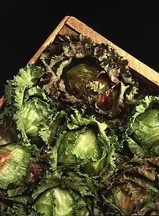 - les laitues batavia (Lactuca sativa var. Capitata) à feuilles plus craquantes et nervures parallèles. Ces deux types ont des pommes assez rondes. Les batavias ont été elles-mêmes subdivisées en :