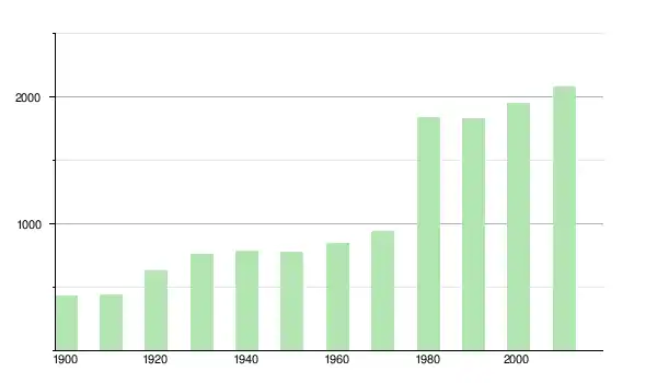 | 1980 | 1 842 | ▲ +94,3 % | |