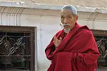 Le titre de lama (tibétain : བླ་མ་, Wylie : bla ma, contraction de bla na med pa, « insurpassable »[1],[2]) est donné à un enseignant religieux du bouddhisme tibétain[3]. Robert A. F. Thurman traduit lama par « mentor[4]. » D'une manière générale, le terme lama, qui s'utilise aussi en Occident, désigne un niveau de réalisation spirituelle avancé. Il s'applique à un enseignant considéré comme une source de la vérité qui libère[5]. Il y a des lamas moines et parfois des lamas nonnes; on trouve aussi des lamas laïques (en particulier dans le Nyingmapa): ils vivent à l'écart de leur temple local, mais se réunissent parfois pour la pratique de certains rituels[5].