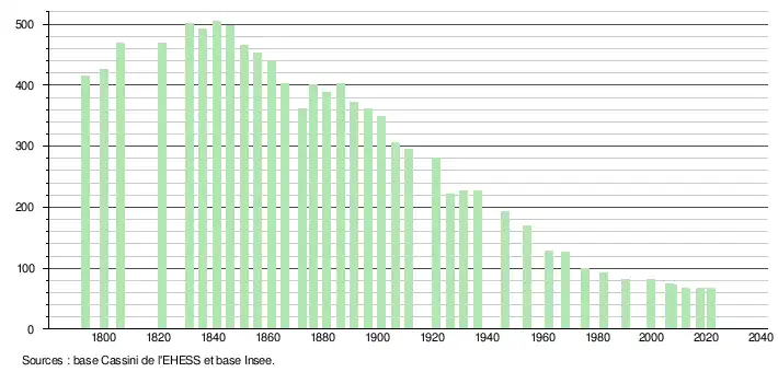 - Population municipale légale en vigueur au 1er janvier 2024, millésimée 2021, définie dans les limites territoriales en vigueur au 1er janvier 2023, date de référence statistique : 1er janvier 2021.
