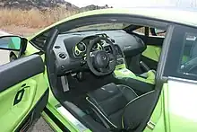 L'habitacle traité en noir est à l'image des Lamborghini et relativement des Audi, sans plus d'attention que les précédents modèles. La console centrale se prolonge entre les deux sièges et une petite visière derrière le volant permet d'abriter les cadrans de contrôle[2].