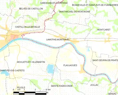 Carte de Lamothe-Montravel et des communes avoisinantes.