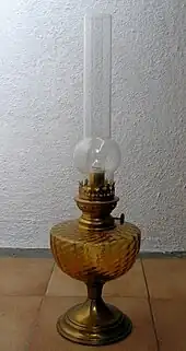 Inventée par le pharmacien polonais Ignacy Lukasiewicz en 1853, la lampe à pétrole est un luminaire constitué d'un réservoir contenant du pétrole lampant (distillat de pétrole), qui monte vers le bec grâce à une mèche. Le tout est surmonté d'une cheminée de verre.