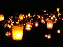 Lors de la Fête des Lumières de Lyon (fête de la Vierge Marie du 8 décembre) la ville de Lyon est entre autres décorée de milliers de bougies-lampions.