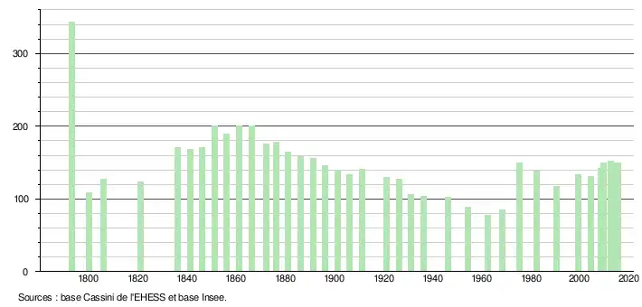 (Sources : Ldh/EHESS/Cassini jusqu'en 1999[5] puis Insee à partir de 2006[8].)