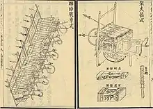 Dans le Wubei Zhi, 1621, sous la dynastie Ming, en Chine, différents lance-roquettes multiples sont décrits, sous formes de chariots de guerre appelés jiahuo zhanche (架火戰車).