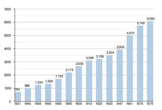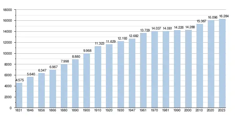 - Source: DGS , de 1831 à 1981=recensements population; à partir de 1990 = nombre d'habitants chaque 1 janvier