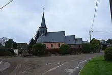 La nef est construite en brique rouge et le chœur en galandage (mur constitué de briques posées sur champ). Le côté nord de la nef date du XVIIe siècle et le côté sud du XVIe siècle. La charpente est datée de 1531 et une des corniches est ornée d'une vigne chargée de feuilles et de raisins[18].