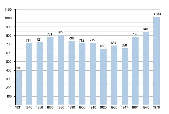 - Source: DGS, 1831 à 1970=recensements population, 1976= habitants au 31 décembre