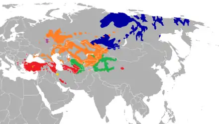 Selon Lars Johanson[7], la famille des langues turques peut être divisée en six branches :