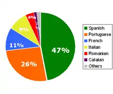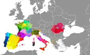 Les langues romanes, aussi appelées langues latines[2],[3] ou encore langues néo-latines[4],[5],[6], sont un groupe de langues issues du latin vulgaire, plus précisément du latin véhiculaire[7]. Utilisés pour la communication sur toute l'étendue de l'Empire romain, le latin véhiculaire a évolué en plusieurs langues romanes dont trois : le castillan, le français et le portugais, ont connu une expansion mondiale à partir du XVe siècle.