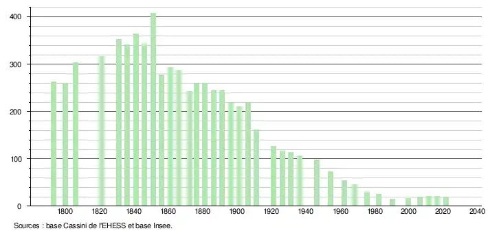 En 1854, le choléra fait 75 morts parmi les 408 habitants de la commune.