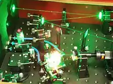 - Optique non linéaire, comme la génération de seconde harmonique, l'amplification paramétrique[21] et l'oscillateur paramétrique optique.