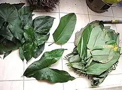 Les jeunes feuilles sont cuisinées en légumes, parfois seulement en situation de pénurie. On les utilise aussi pour envelopper les bâtons de manioc (chikwangue[2]).