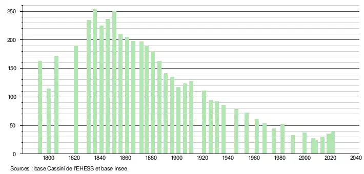 - Population municipale légale en vigueur au 1er janvier 2024, millésimée 2021, définie dans les limites territoriales en vigueur au 1er janvier 2023, date de référence statistique : 1er janvier 2021.