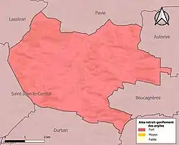 Le retrait-gonflement des sols argileux est susceptible d'engendrer des dommages importants aux bâtiments en cas d’alternance de périodes de sécheresse et de pluie. La totalité de la commune est en aléa moyen ou fort (94,5 % au niveau départemental et 48,5 % au niveau national). Sur les 150 bâtiments dénombrés sur la commune en 2019, 150 sont en aléa moyen ou fort, soit 100 %, à comparer aux 93 % au niveau départemental et 54 % au niveau national. Une cartographie de l'exposition du territoire national au retrait gonflement des sols argileux est disponible sur le site du BRGM[23],[Carte 3].