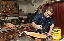 Ceci permet à la teinte de bien pénétrer le bois et de réchauffer sa couleur. La présence d'un peu de liant permet de maintenir les pigments protecteurs en place et d'assurer une accroche.