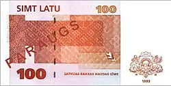 - De 1922 à 1940, la Banque de Lettonie émet des billets de 10, 20, 25, 50, 100 et 500 lats. En 1923, ce sont les premiers billets de 100 lats. Le dessin de ce billet est dû aux artistes Rihards Zariņš et Kārlis Krauze. Tous les billets sont imprimés au Royaume-Uni de 1924 à 1938 pour respecter des critères minima de sécurité, du coup, ils sont dessinés par des artistes britanniques à la seule exception du billet de 100 lats de 1939, dessiné par Jānis Šternbergs et Kārlis Krauze.