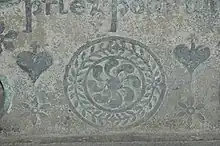 ![]() Lauburu à huit virgules sur une stèle funéraire de l’église d’Iholdy |