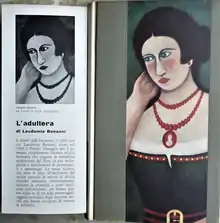 En 1954, Laudomia Bonanni a publié le recueil de nouvelles intitulé Palma e Sorelle; en 1960, avec l'éditeur Valentino Bompiani, elle publia le roman à fond policier L'imputata, entièrement adapté à L'Aquila. Avec le roman suivant, L'adultera, Laudomia Bonanni s'est détachée du milieu des Abruzzes et a raconté l'histoire d'une jeune femme qui à Milan est représentante de tissus pour la mode. Après un long et drammatique voyage en train, à destination de Naples, Linda rencontre son amant et meurt dans une chambre d'hôtel, étouffée par une fuite de gaz.