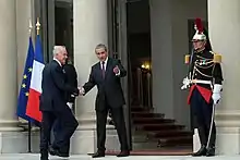 Suivant la tradition, il est reçu, au cours d'une réception en son honneur à l'occasion de son départ du poste de chef du protocole, par le doyen du corps diplomatique en France, en l’occurrence le nonce apostolique Luigi Ventura.