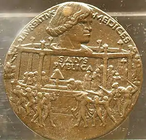 Laurent de Médicis (en italien Lorenzo di Piero de' Medici : « Laurent, fils de Pierre de Médicis »), surnommé Laurent le Magnifique (Lorenzo il Magnifico), né à Florence le et mort dans cette même ville le , est un homme d'État italien et le chef du gouvernement de la République florentine durant la Renaissance italienne. Ses contemporains le surnommèrent le Magnifique[1]. Cette appellation fait référence au sens ancien du mot en français, « généreux, prodigue ». Il a été l’un des personnages les plus remarquables de son époque. Au-delà de ses talents de diplomate et d’homme politique, il a côtoyé un groupe de brillants érudits, d’artistes et de poètes et a également excellé dans des disciplines aussi variées que la joute, la chasse, la poésie, le maniement des armes ou l’athlétisme. Par cet éventail de talents, il constitue ainsi l’une des plus belles incarnations de l’idéal de l’Homme de la Renaissance. Sa vie coïncida avec la Première Renaissance des Arts et il disparut à l’apogée de la puissance florentine.