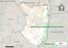 Par ailleurs la commune fait partie de l'aire d'attraction de Montpellier, dont elle est une commune de la couronne[Note 3]. Cette aire, qui regroupe 161 communes, est catégorisée dans les aires de 700 000 habitants ou plus (hors Paris)[I 5],[I 6].