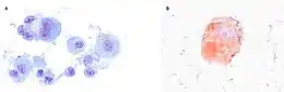Examen microscopique d'un échantillon de lavage bronchoalvéolaire.