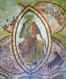 Fresque du XIIe siècle représentant le baptême du Christ.